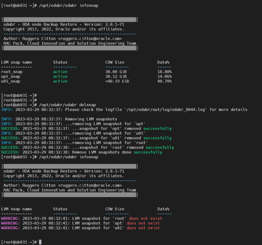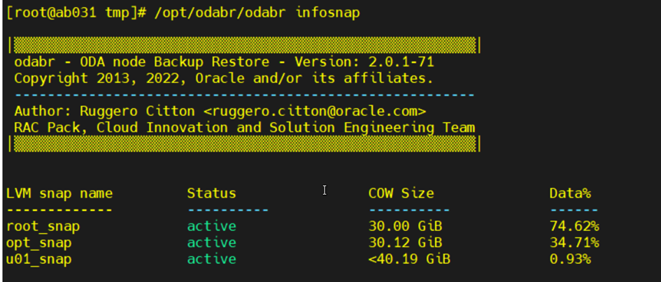 #/opt/odabr/odabr backup -snap