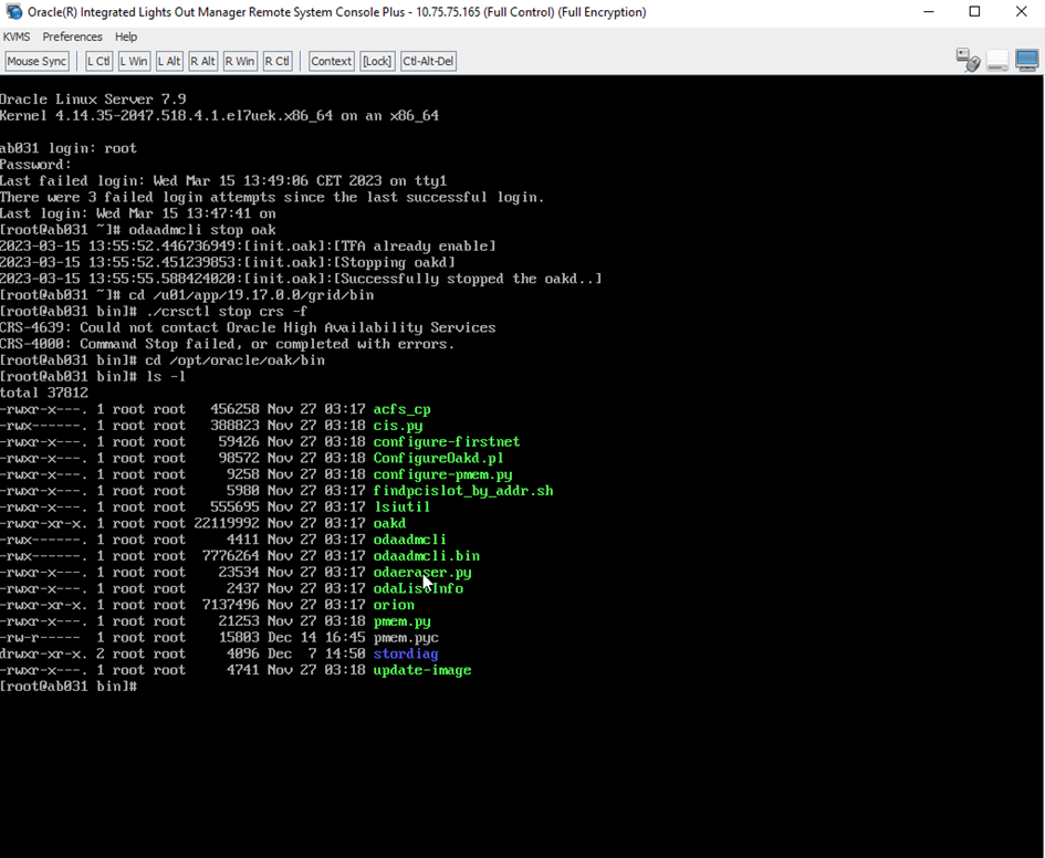 Als dit succesvol is volgen we dezelfde procedure op de tweede node behalve het stoppen van de crs die is nl al gedaan op de eerste node