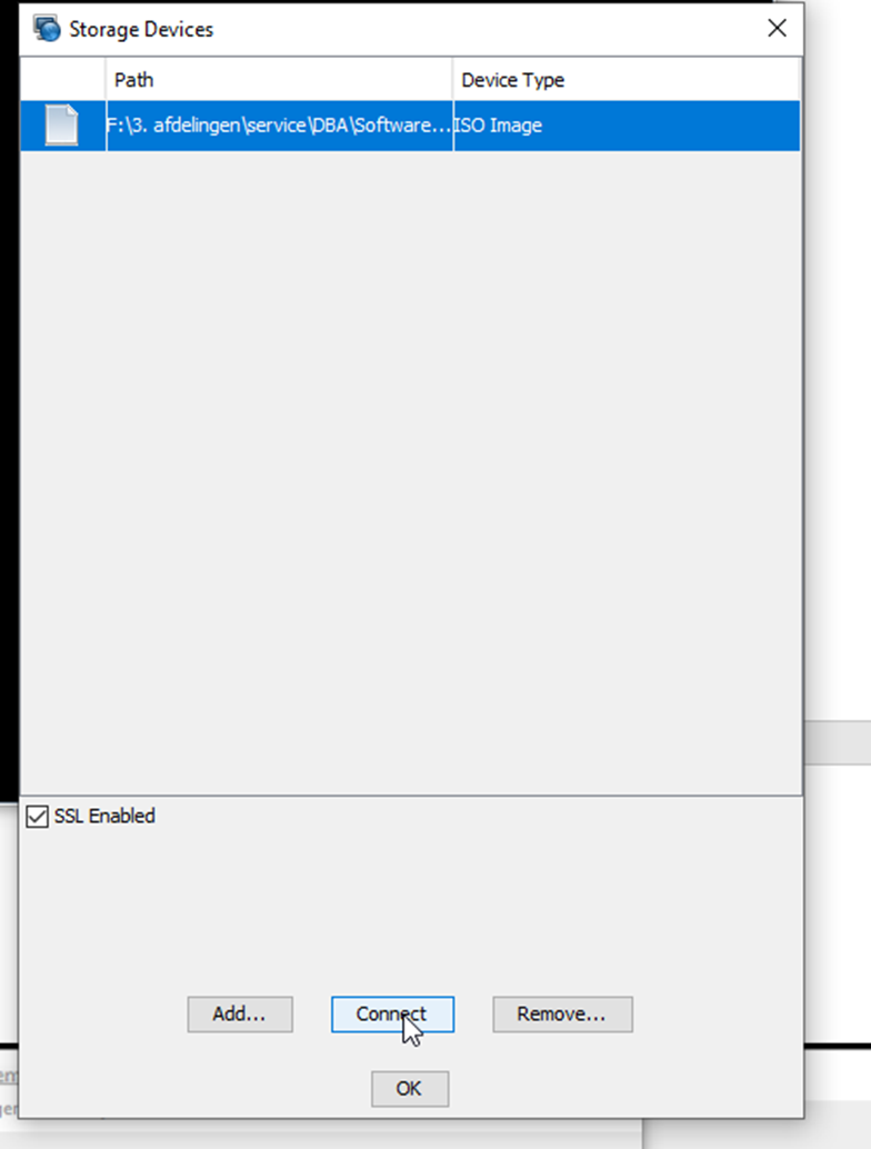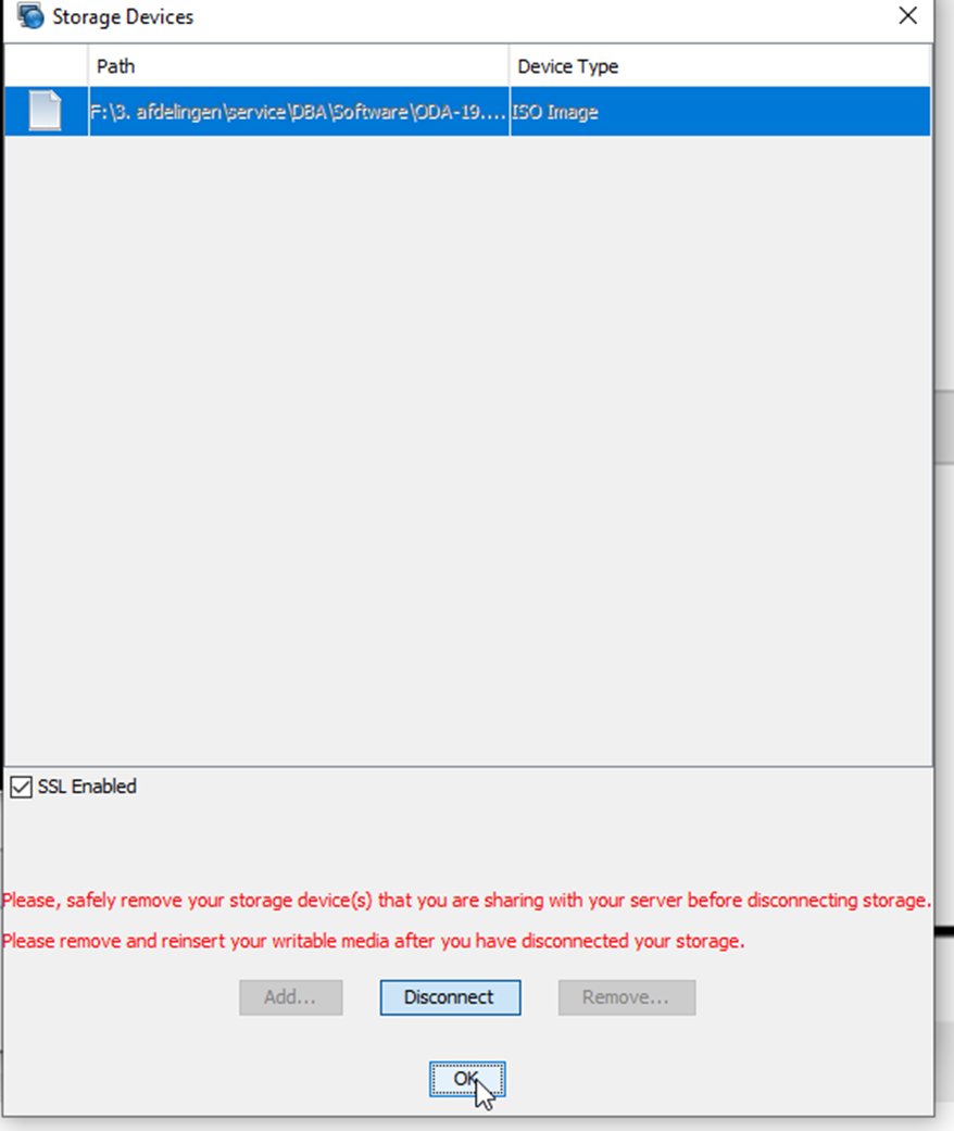 Nu is de storage device (we noemen het CDROM) attached aan de server:
