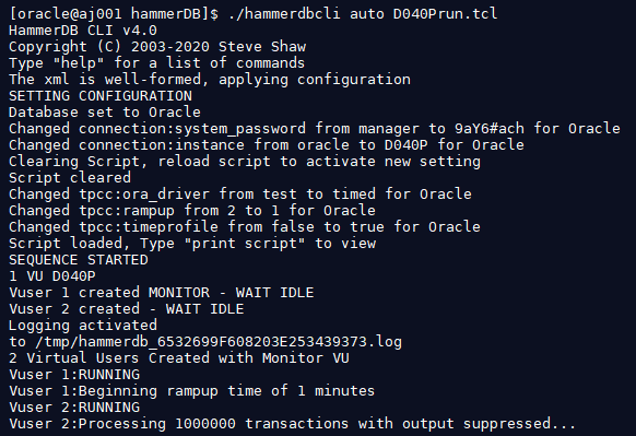 [oracle@aj001 hammerDB]$ ./hammerdbcli auto D040Pbuild.tcl